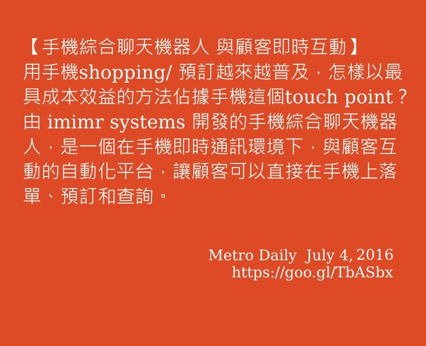 BIZbyAI is the AI business solution arm of imimr systems. We power up your business with AI. We provide a wide spectrum of AI solutions to corporate customers -- Selling, Marketing, Customer Service, After Sales and Operations by AI solutions.